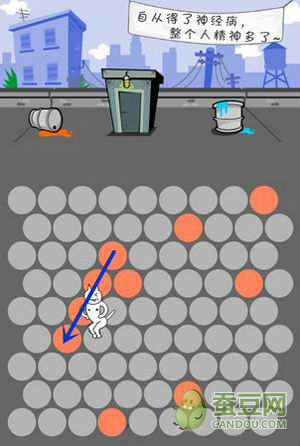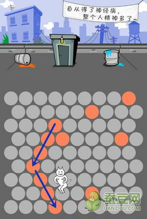 依靠地图上原有的红点,将他们连成一条直线,这样就能在步数上领先神经猫了。利用原有的红点堵住逃跑路线,是围住神经猫的重要技巧。