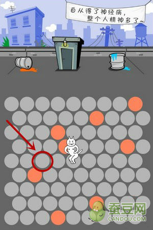 如图所示,这时要尽快把神经猫困住,直到他不能移动了,才能获胜。所以这时就要贴着神经猫点出红点,让他无处可逃。