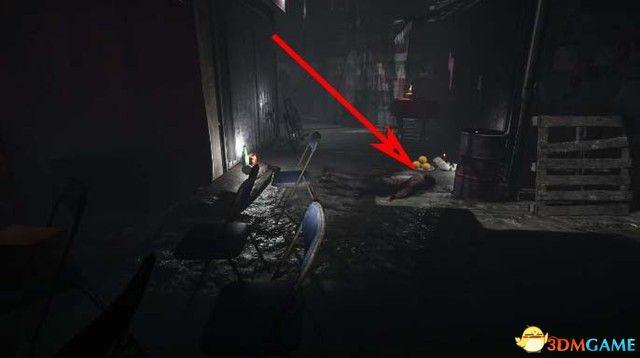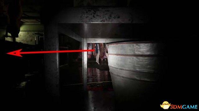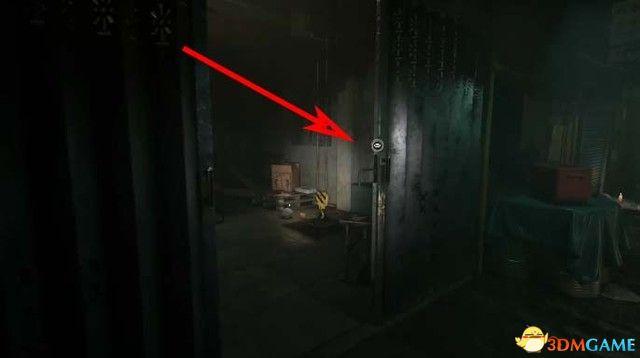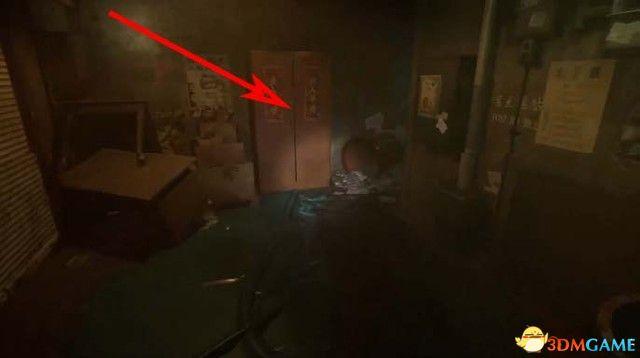 进入仓库,如下图箭头所指,拾取柜子里面的锤子后,将那扇被锁住的门砸开就可以进去了。