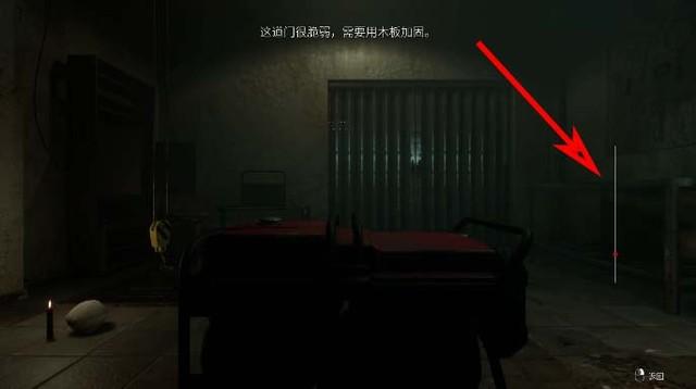 ③.等到屏幕上方出现提示之后,将如下图箭头所指的木板将门堵住。