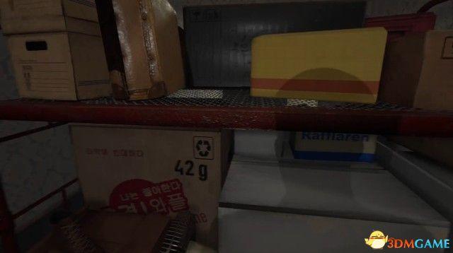 顺着地上的黄色电线走可以找到出口,进入房间之后,可以在桌子上找到一个盒子,