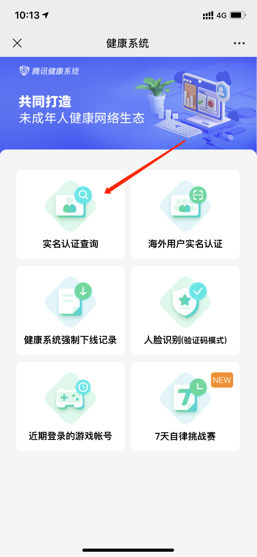第三步:进入健康系统后界面第一个选择就是实名认证查询,我们点击进去。
