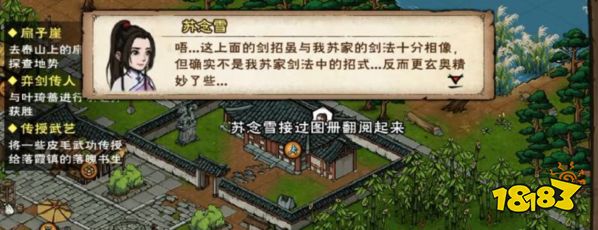 2、在和这个宋云迟兑换,选择打听,然后随便选择,之后就可以触发这个弈剑传人,苏念雪就会和其寒暄。玩家在和这个宋云之对话打听武学图谱。