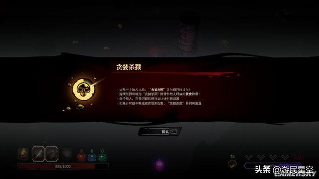 的确,《无间冥寺》的弱故事性让我们能够更加专注于战斗,但同时也导致游戏丧失了一些吸引玩家的“钩子”。我们无从得知主角的身世、神殿的背景,甚至在探险的过程中也不会出现任何一名NPC来引导玩家度过茫然的新手期,而是用最简单的弹窗教程来叙述游戏的玩法。
