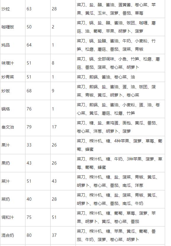 但本作的料理系统向快节奏的社会进行了妥协。也许担心如今玩家没有足够耐心,料理系统变成先有菜谱才能制作的设定。从NPC或在电视节目观看获得的菜谱减少了玩家探索搭配的趣味,但也符合更多不愿意在此花费更多时间的玩家想法,毕竟现在可是玩游戏都要精密计算时间成本的时代。