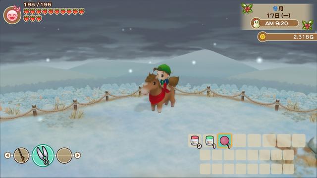 切换场景时被男上加男卡模型,下马和上马动作不同的延迟,这些都是应该解决的小问题,可惜并没有得到改变。而说到这些不足,就不得不提到一件会让人笑出声的漏洞——2003年GBA版本中的BUG仍然存在,通过特定操作使作物不受季节影响的BUG仍然存在,在会心一笑时,我们也最好理解成这是MMV有意为之。