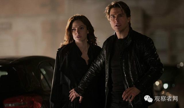 显然,伊尔莎妹子在干一件很滑稽的事。她要取得军情六处的信任,就得取得辛迪加的信任;她要取得辛迪加的信任,就得取得她不慎喜欢上的男人——亨特(汤姆·克鲁斯饰)的信任。