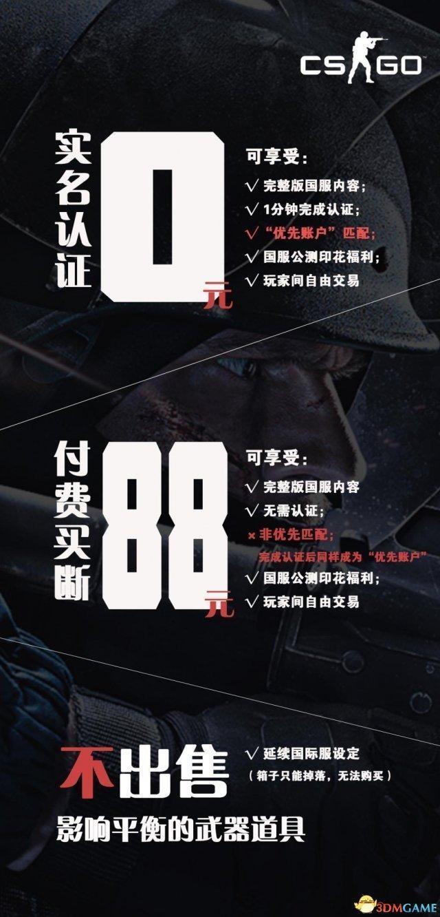 今天,完美正式公布CS:GO国服完整商业模式——“认证免费制”与“买断制”。在“认证免费制”的基础上增加的“买断制”是主要用于服务于海外华侨、一人多号、无法认证或者不想认证的玩家。