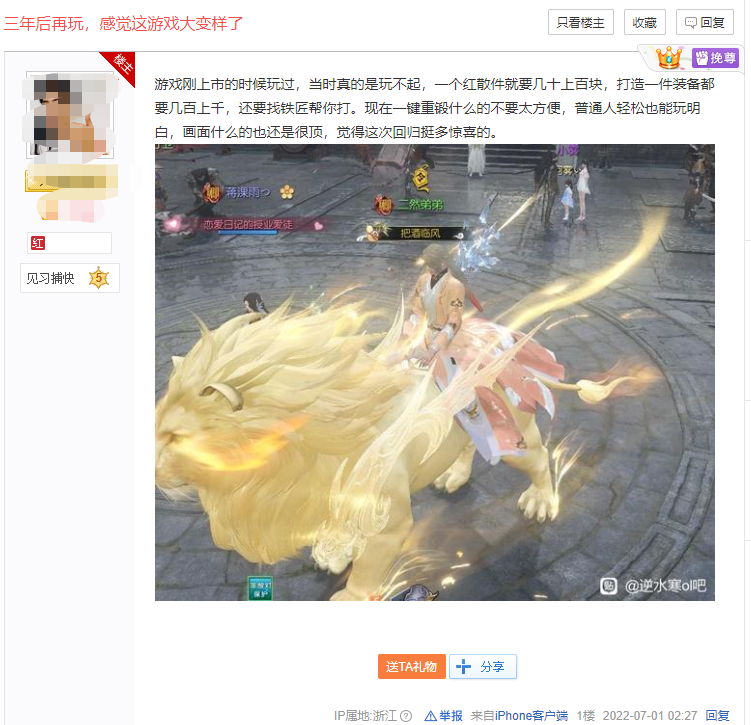 像是增产降消的结构性改革,《逆水寒》官方以执行就是三四年,其改革的力度不可谓不大。而游戏根本性的变化,也为很多阔别多年,趁着四周年新区开放而回归的玩家们带来了巨大的震撼。很多玩家都不敢相信现在这款登陆就送时装、称号,完全没战力歧视的游戏是当年那个“家里有矿才能玩”、一件三血红装都要用去几百上千元的《逆水寒》。对于游戏的感官,可谓是360度大反转。