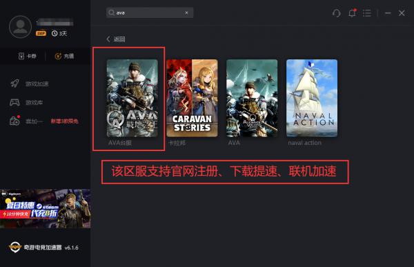 用奇游加速后能够保证顺利登录、降低延迟、避免掉线卡顿问题。以上是关于《AVA战地之王》账号注册和客户端下载教程的分享,各位赶紧去试试吧!