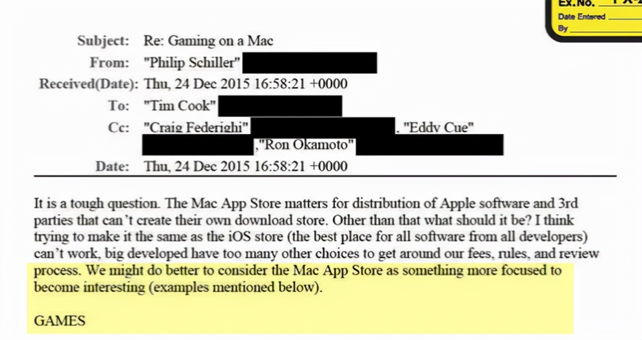 在前不久Epic与苹果的官司中,就有资料显示,早在2015年,Tim Cook就认识到了Mac App Store缺乏活力的一大因素就是因为缺少游戏,虽然当时得到的回复是“苹果尝试了,但失败了”,但Tim Cook并没有放弃苹果的游戏梦想。