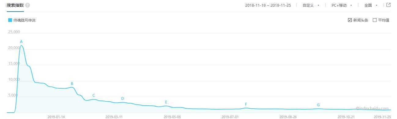 从开服的巅峰开始,数据一直下降,没有明显反弹(数据来源:百度指数)