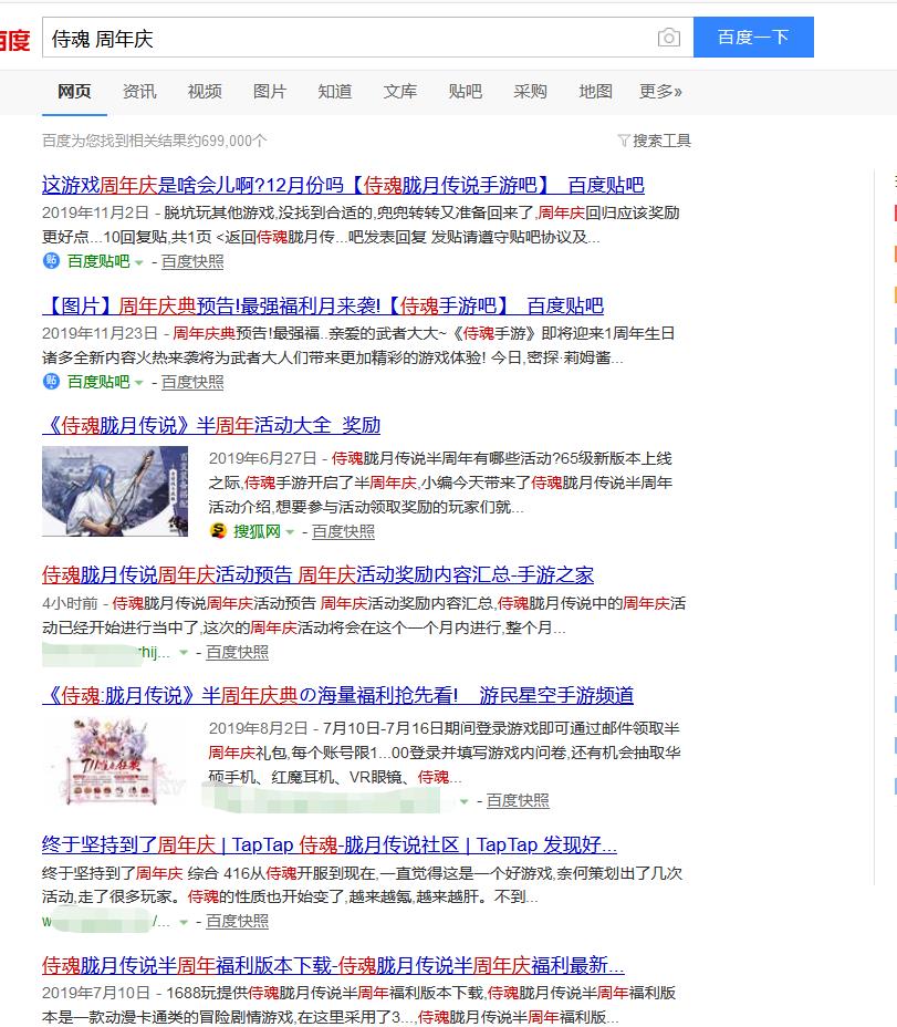 而在周年庆前近一个月的iOS免费榜上,侍魂手游也一直在400名以后徘徊,最低时甚至到达了963名的位置,与一年前的风光无限形成了鲜明对比,甚至在百度上搜索“侍魂 周年庆”的关键词,跳出来的更多却是“半周年庆”内容。