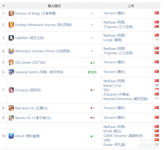 吸金能力上,在12月iOS中国收入榜中,侍魂排至第六,将同为日式和风的老牌手游《阴阳师》的位置挤下。