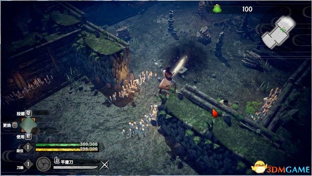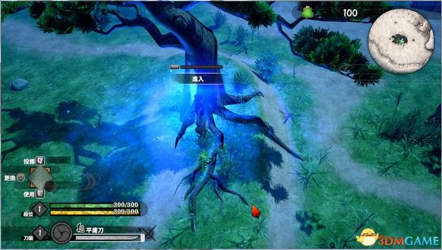 进入异世界之后,继续往前,按F拔刀,鼠标左键轻击,右键重击,每攻击一下就会消耗耐力,