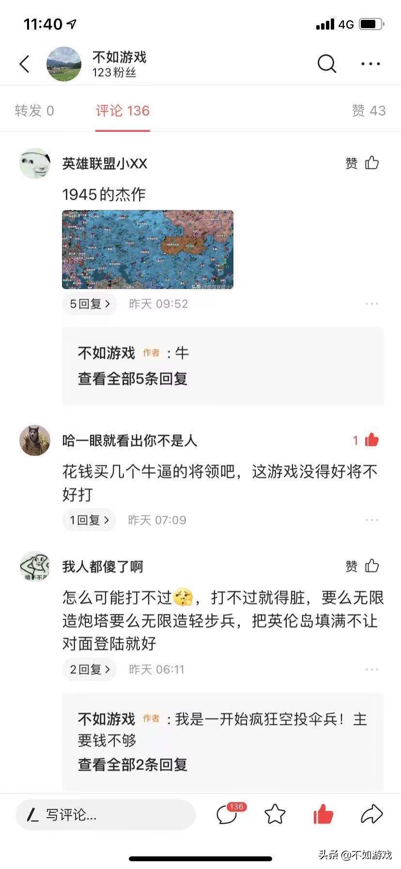 第四节,在网友积极鼓励和群策群力下,做了战略调整,先控制北欧,防止德意志做大,压倒苏联,发展东南亚,协防日本,保住中华民国,减轻美国负担,推动非洲土地增加经济收入。最核心不足,派一队最优质的坦克兵进入欧洲复地减缓德国推进到英吉利海峡,然后用剩余经济造大量潜艇,一直排开在英吉利海峡,房子德意志、西班牙反扑。这个策略很顺利,不到三小时就顺利赢了。