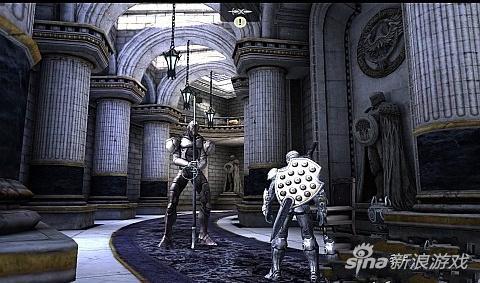 搞定这个小怪之后,一段剧情就开始了,一个妹纸(貌似是个商人)会出来抢走主角的战利品。剧情结束后,主角乘坐船只离开码头,进入一个宫殿,中途遇到两个卫士,这两个卫士直接可以攻击解决,没什么技巧,简单轻松击杀。