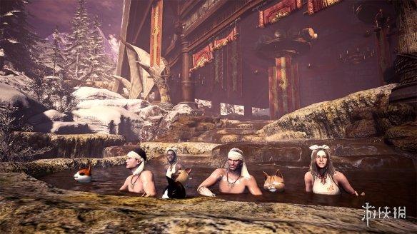 集会区域还有寒冷地区才有的设备,比如蒸汽浴和温泉等。在蒸汽浴和温泉中与同伴之间进行交流,享受休闲惬意时间的同时又让玩家们聚集在一起,加强了彼此之间的交流。在视频中我们可以看到了在足浴池中和艾露猫玩耍的场面,抱着艾露猫慢慢靠近水面,可以看到它不断扑腾的样子,小小的恶作剧也是乐趣十足。