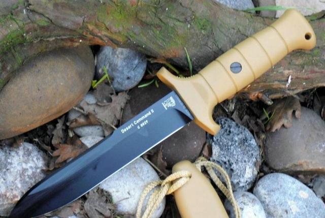 索林根是德国最著名的刀具,其中也为军用领域当中,推出多种不同的战斗匕首,其中的KM3000就作为当代德军特种兵的必备军刀之一。这种匕首的刀刃使用高密度渗碳钢打造,硬性很强,还经过机械加工,刀刃非常锋利,但并没有设计血槽。刀柄部分采用工程塑料结构,中间使用螺丝与刀刃尾部的套筒固定,而且刀柄手感很好,具有人体工程学设计,为了能对应“沙漠特种部队”的名字,所以刀柄的颜色也是沙漠色。