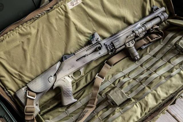 德国的军用霰弹枪比较少见,德军特种兵一般都会装备由意大利伯奈利制造的Super90系列霰弹枪,或者是美制雷明登M870系列霰弹枪,但一般使用M4Super90的比较多,因为这种霰弹枪具备半自动装填能力,近战当中火力猛,压制力强,非常占优势,而且M4Super90也是专门为特种作战而研发,尺寸较短,还可涂装各种战术迷彩,枪身也能根据作战需求来安装不同型号的配件,比如有握把、枪口、瞄准镜等,枪身也有多个部分采用了聚合物材料,重量轻,也便于特种兵携带。该枪一般可发射12号口径霰弹,在弹药当中还包括铅弹、鹿弹、鸟弹,燃烧弹等。这种霰弹枪不仅受德军特种兵信赖,而全西方的特种兵都很看好M4Super90半自动霰弹枪。