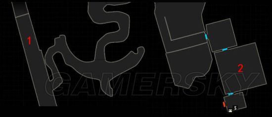 2.在【1】处推车子打开道路,到【2】处打开箱子把伊芙琳的样本放进去获得E坏死毒素,然后往前突突突最后会回到第一章的地图,随便逛一逛会有米娅的影子攻击你(不过貌似不算伤害,同样你伤害她也无效)