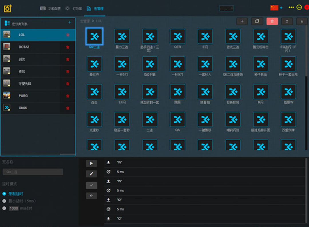 在这里,我们可以通过自己的喜好来设置按键功能,还可以使用大量宏命令,