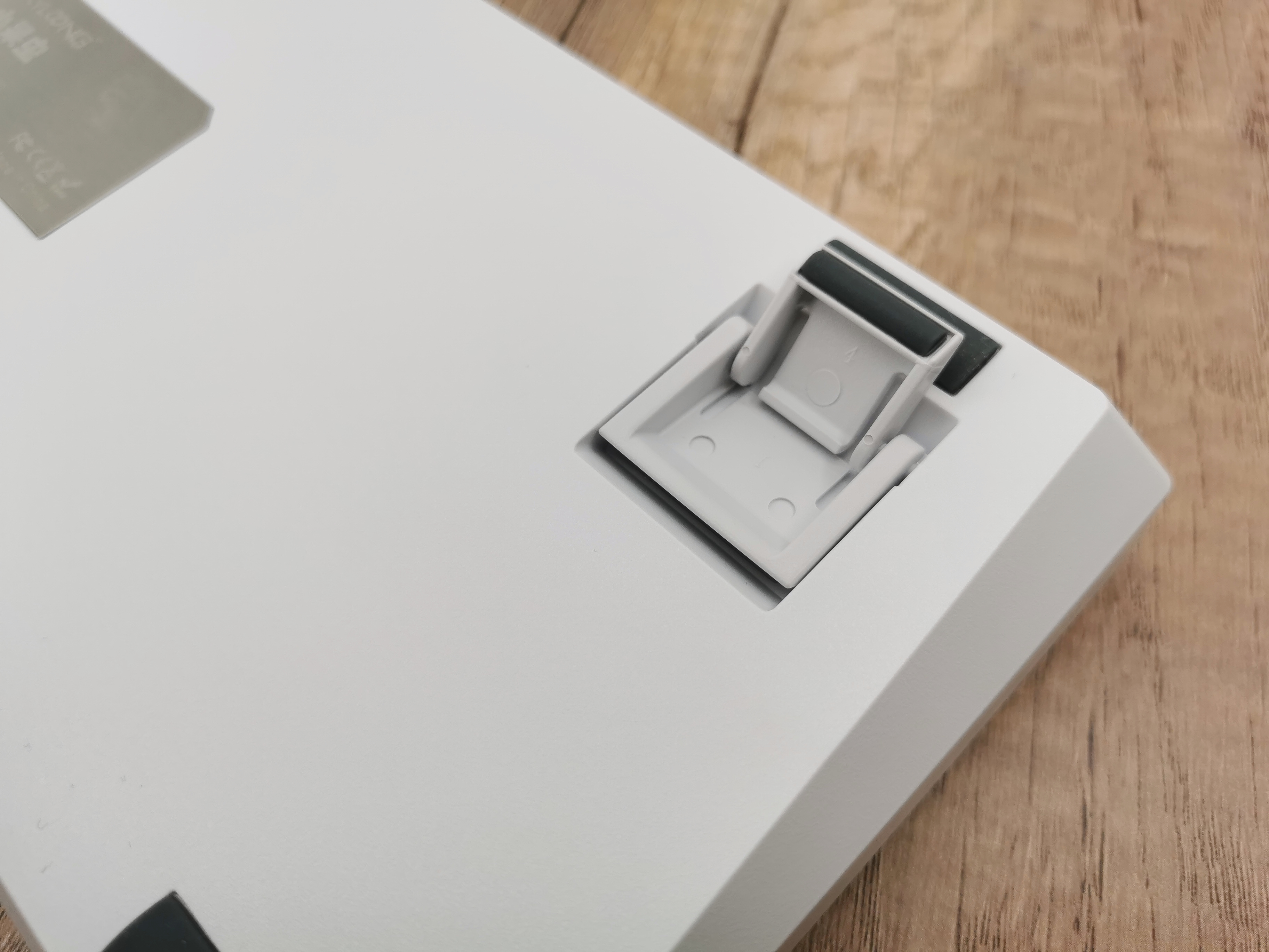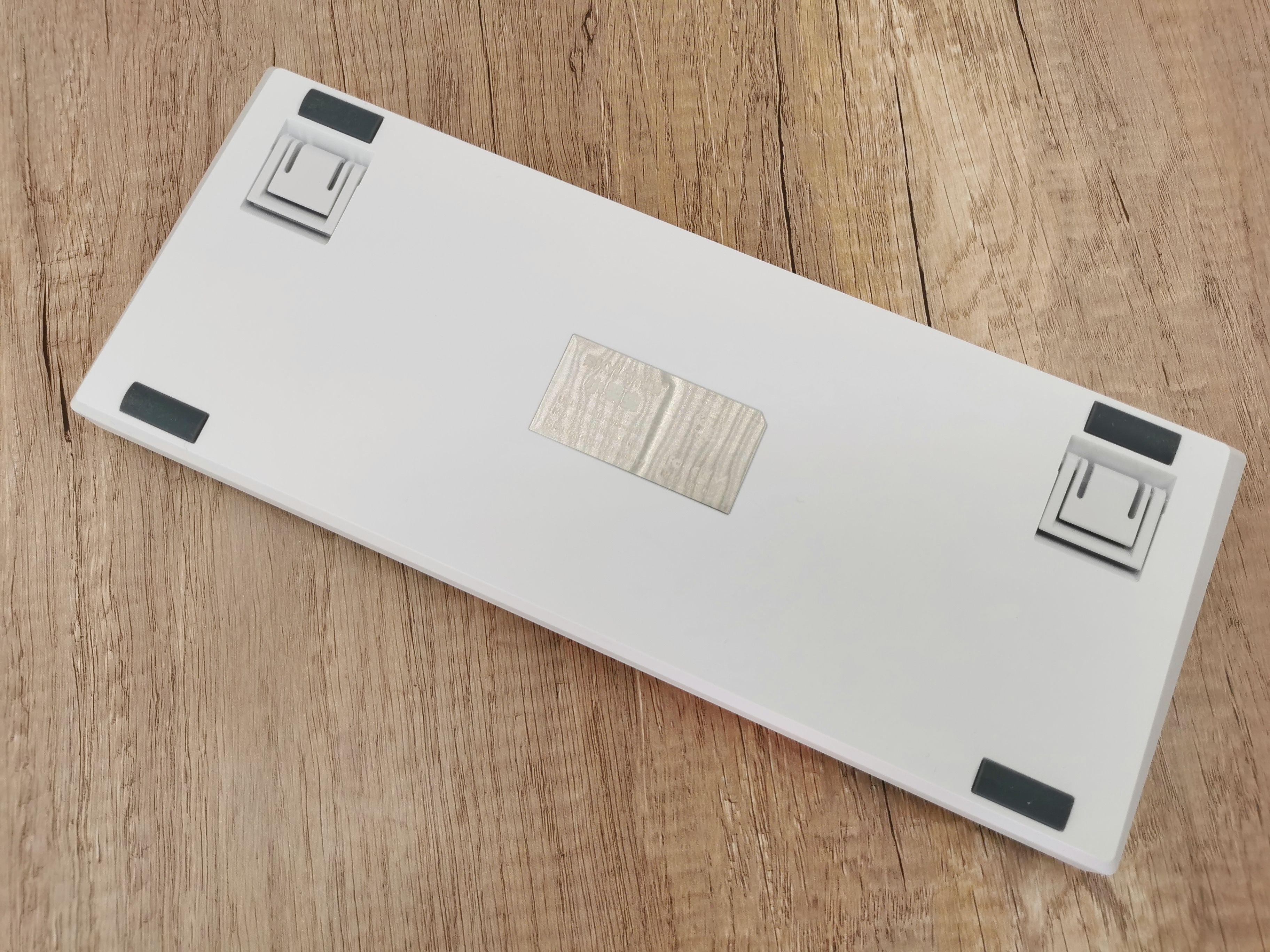 键盘的背面很简洁,四角均有橡胶脚垫,摩擦力很强,放在桌子上比较稳。