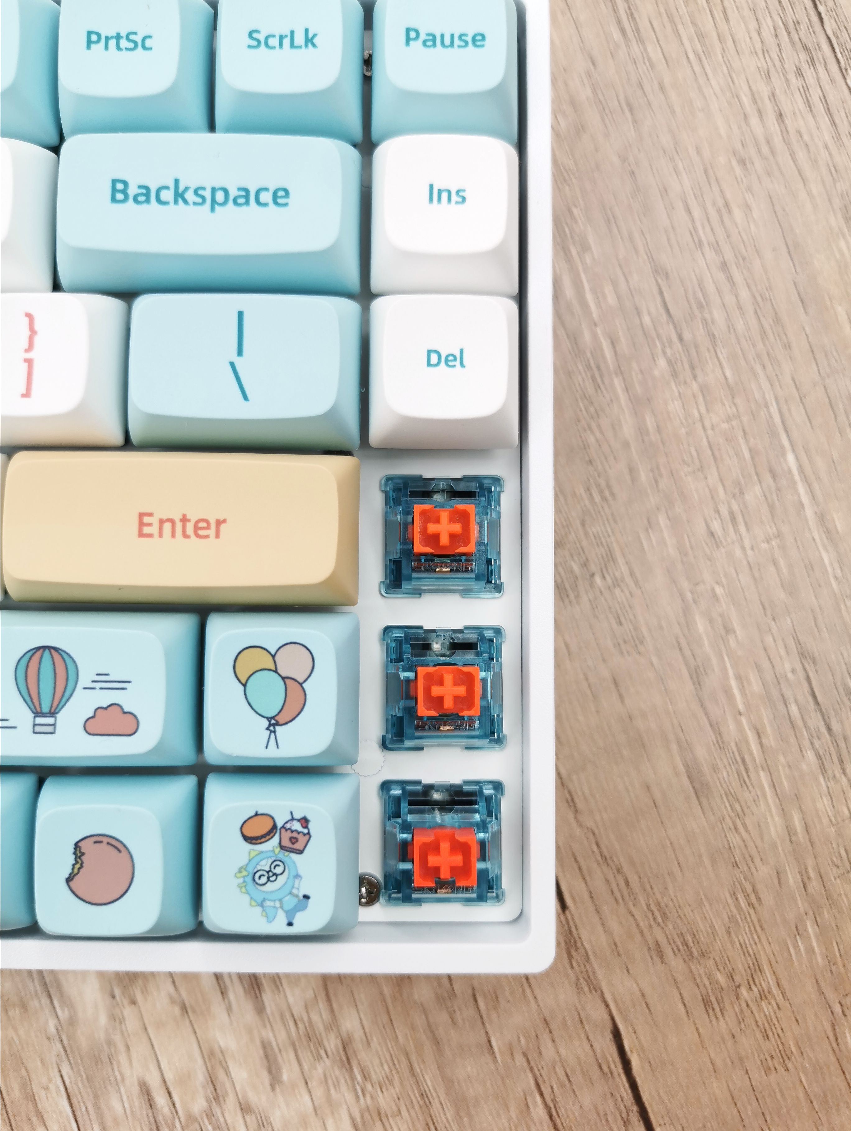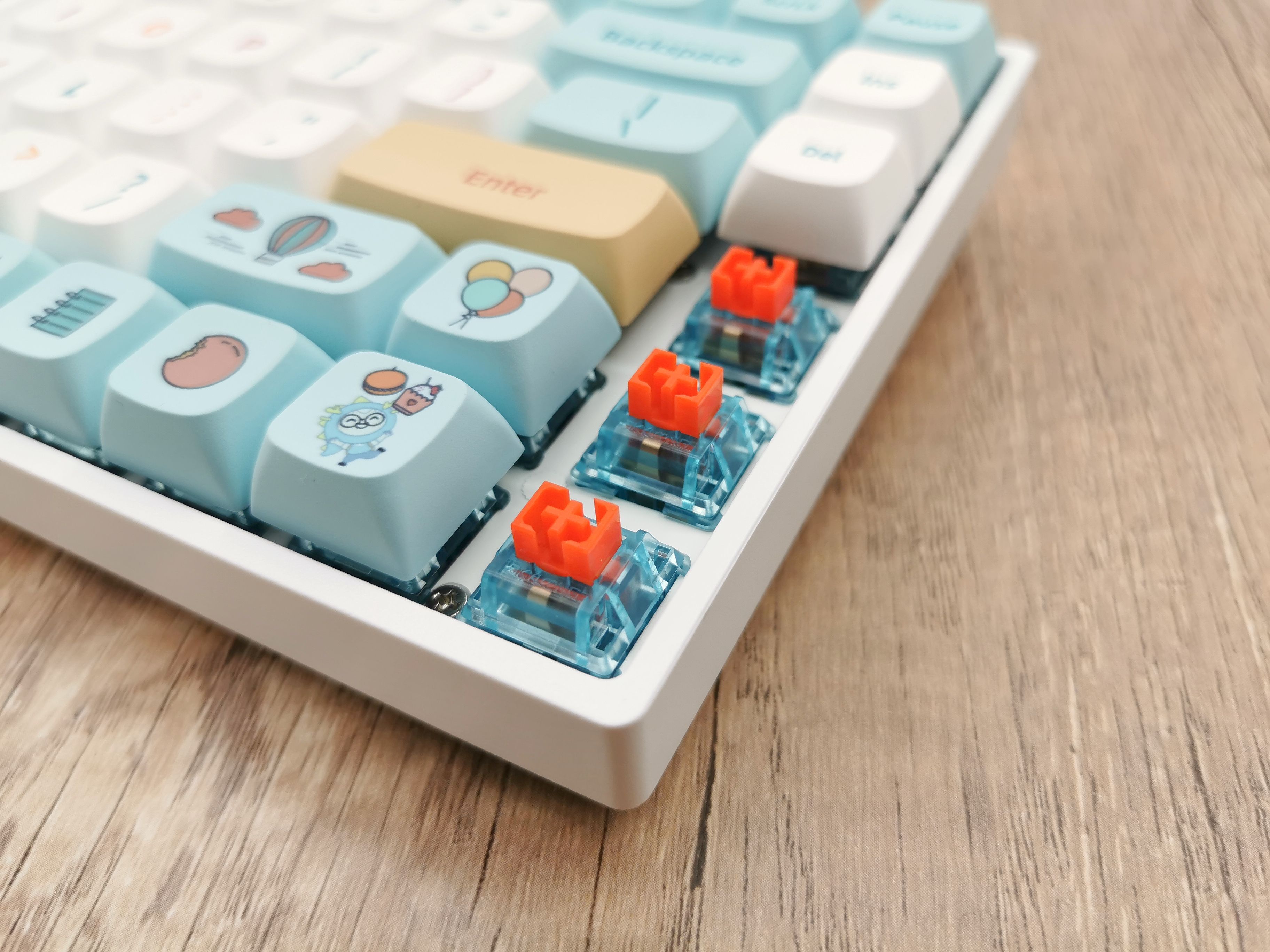 近距离拍一张,这轴体是真的漂亮,通体光滑无毛刺,清淡的蓝色非常亮眼。