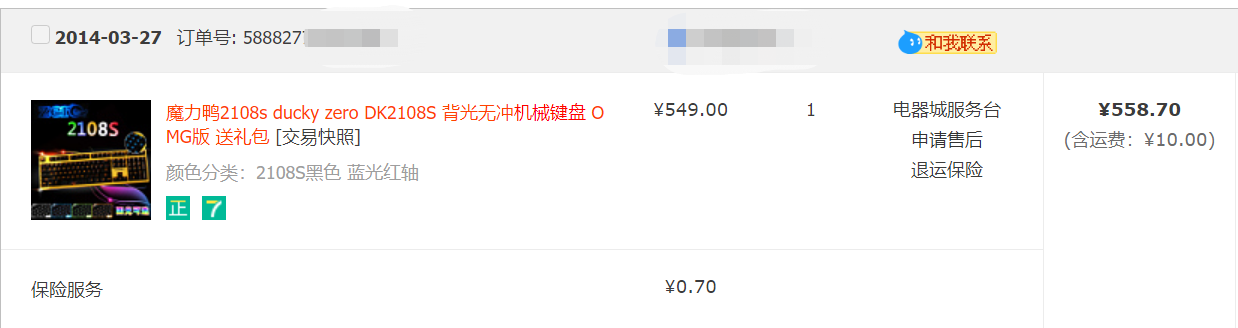 我自己最早入手的机械键盘是ducky的樱桃红轴2108s,服役这么多年,一直没出现质量问题,老版MX红轴的做工质量真的是杠杠的。