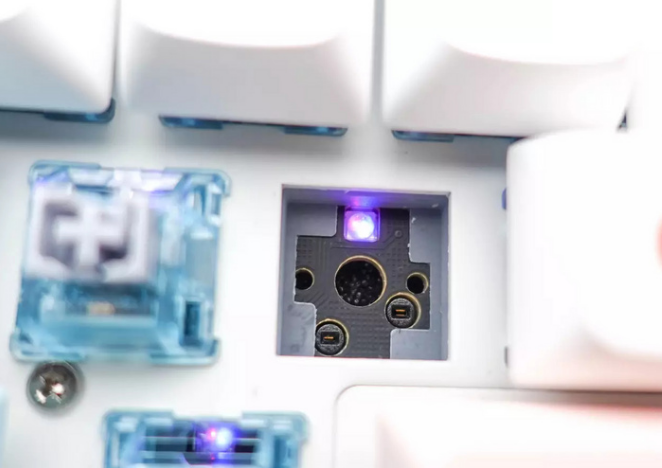 冰蓝色的透明轴体,在开启RGB灯光后可以很好的导出光线,真的是好看。