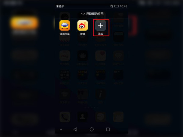 2、在【已隐藏的应用】界面即可看到您已经被隐藏的应用,如果您的应用没有被卸载只是隐藏了就可以在这里看到;接下来我们点击【添加】进入编辑模式;
