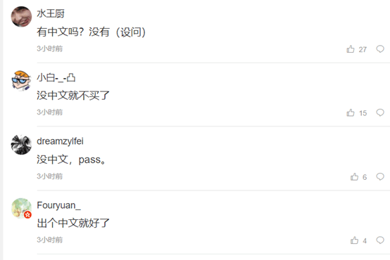 虽然这次Swtich版《暗黑3》可以说是诚意满满,但是我们看到国内网友似乎不太感冒,原因也是让人啼笑皆非,竟然是由于这款《暗黑3》没有中文版本,不得不说官方既然为了这款游戏做了这么多努力那么推出个中文版不是更好吗?我们可以看到有网友说“有中文我肝爆”这样的评论,可以看出这款游戏在我们国服还是影响力巨大,不知道官方会不会有进一步的表示呢?