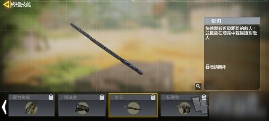 影刃这把近战武器,我们可以通过限时任务"影刃挑战"来解锁。也可以通过CP商店返场花费2000金币兑换。非常帅气哦。