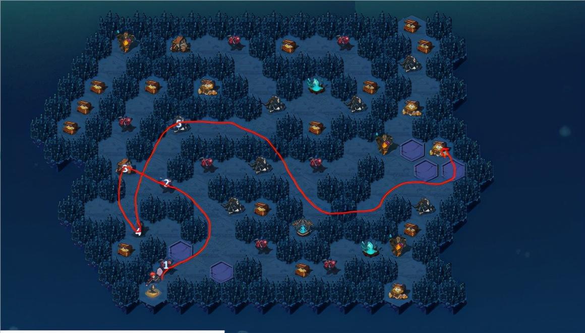 2、但是领取全部宝箱的难度还是比较大的,首先要看看自己有没有足够的风族英雄,没有的话可以在攻略中的3刷风族英雄,刷不到就重开,然后把4打过了,就按照红线直接拿最大的奖励宝箱,剩下的就是乱杀了。