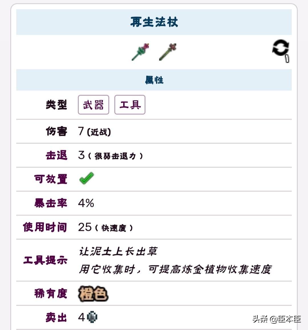 远程武器,搭配火枪子弹使用,一次射出3-4发子弹但只消耗一颗火枪子弹,属霰弹枪。在中近距离的伤害还是非常可观的,值得使用。⭐️再生法杖
