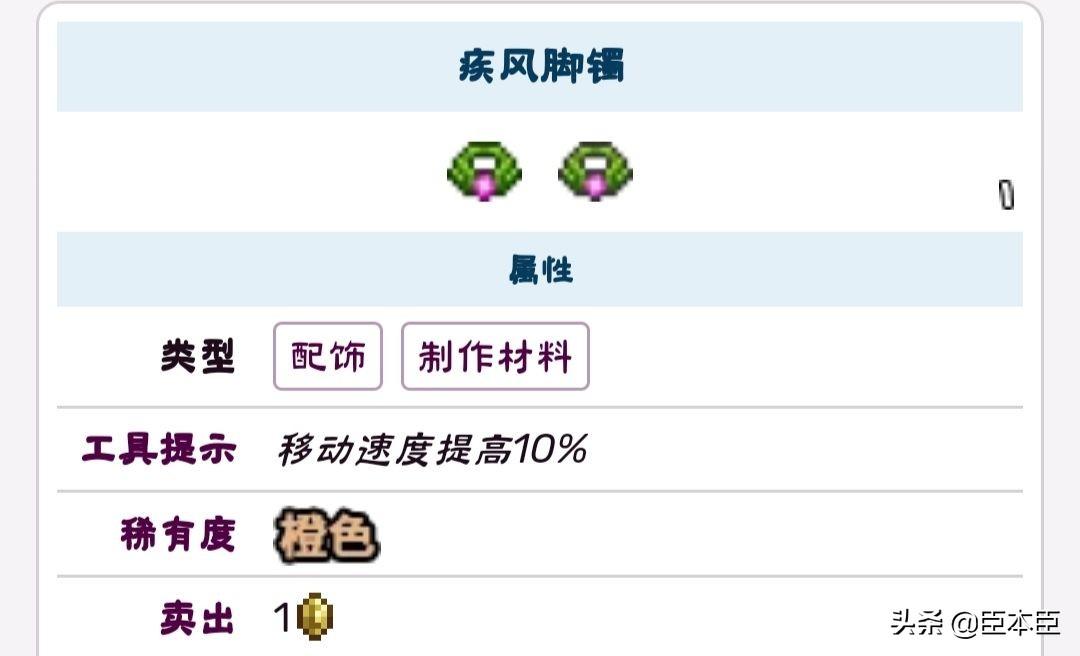 饰品,自从刷鱼饵修复了后就没啥大用处,使走过的地方长花。疾风脚镯