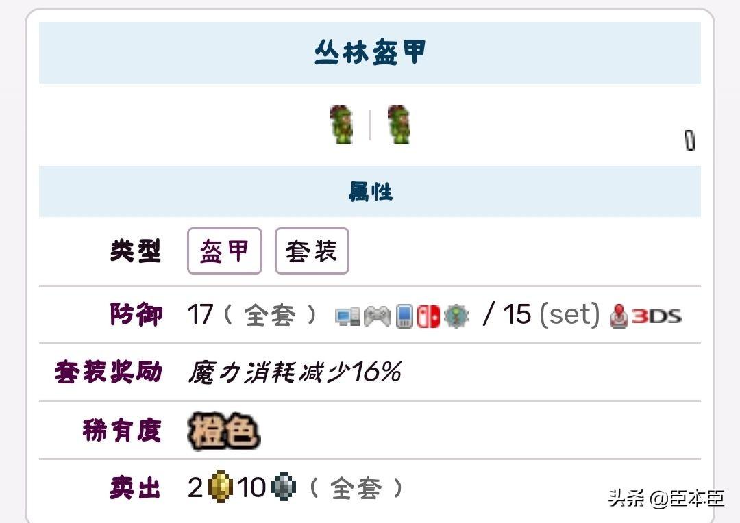 100%掉落于丛林地下的食人怪敌怪。这三种材料可以用于合成丛林系列的盔甲:丛林套