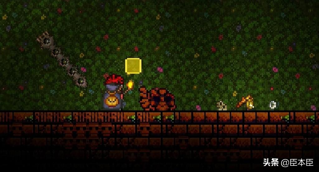 有着褐石色的砖块,无法在石巨人前破坏。我们这阶段只需要发现并记住神庙的位置,想要进入得须击败世纪之花。—————————————————————在丛林收集了足够的资源后,我们将继续面对boss。