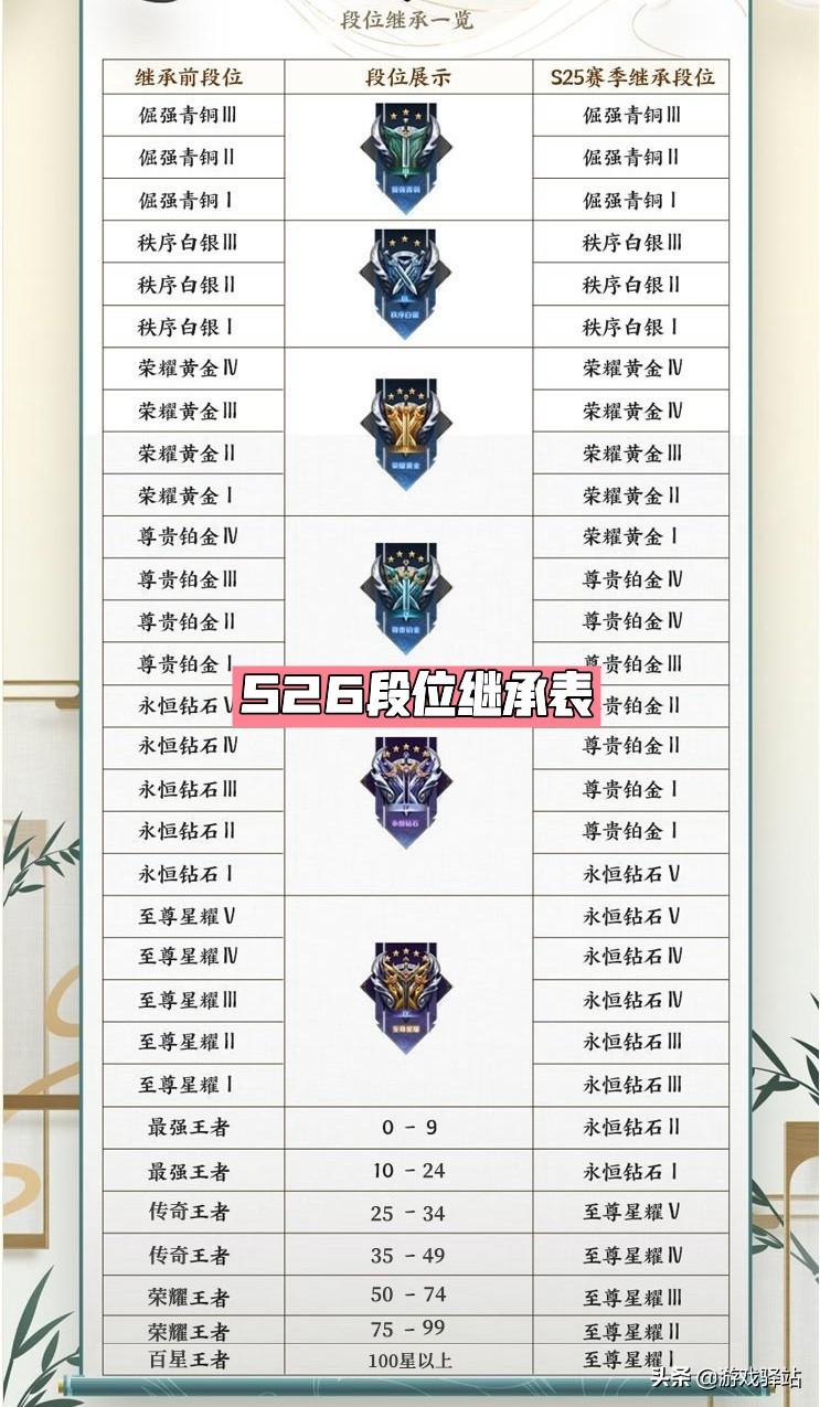 结语:新的赛季新的征程,虽说王者段位继承门槛有所提高,但与上个赛季相比也不算太高(多了一个小段位),那么通过最新段位继承表,小伙伴们你的新赛季初始段位区间如何?欢迎留言讨论!