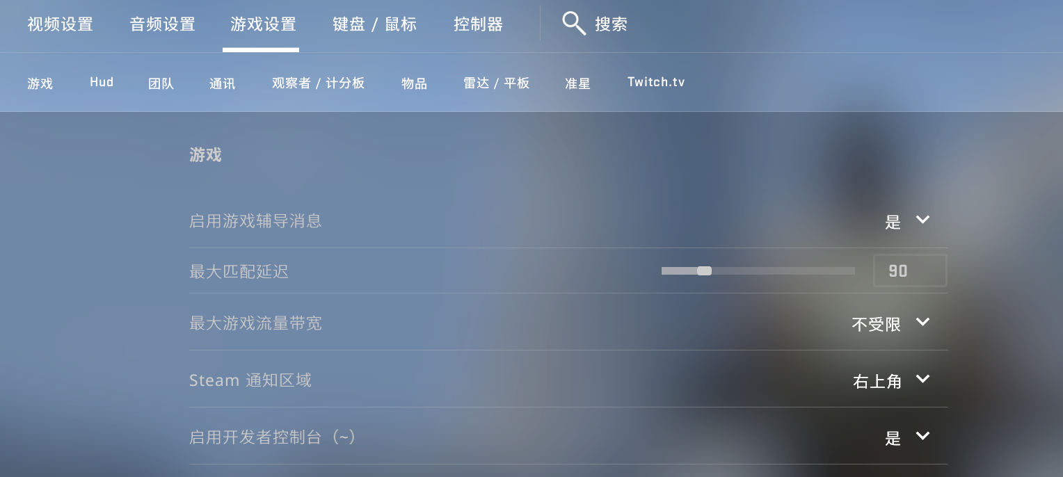 打开CSGO找到设置,选择游戏,启用开发者控制台选择 ”是“