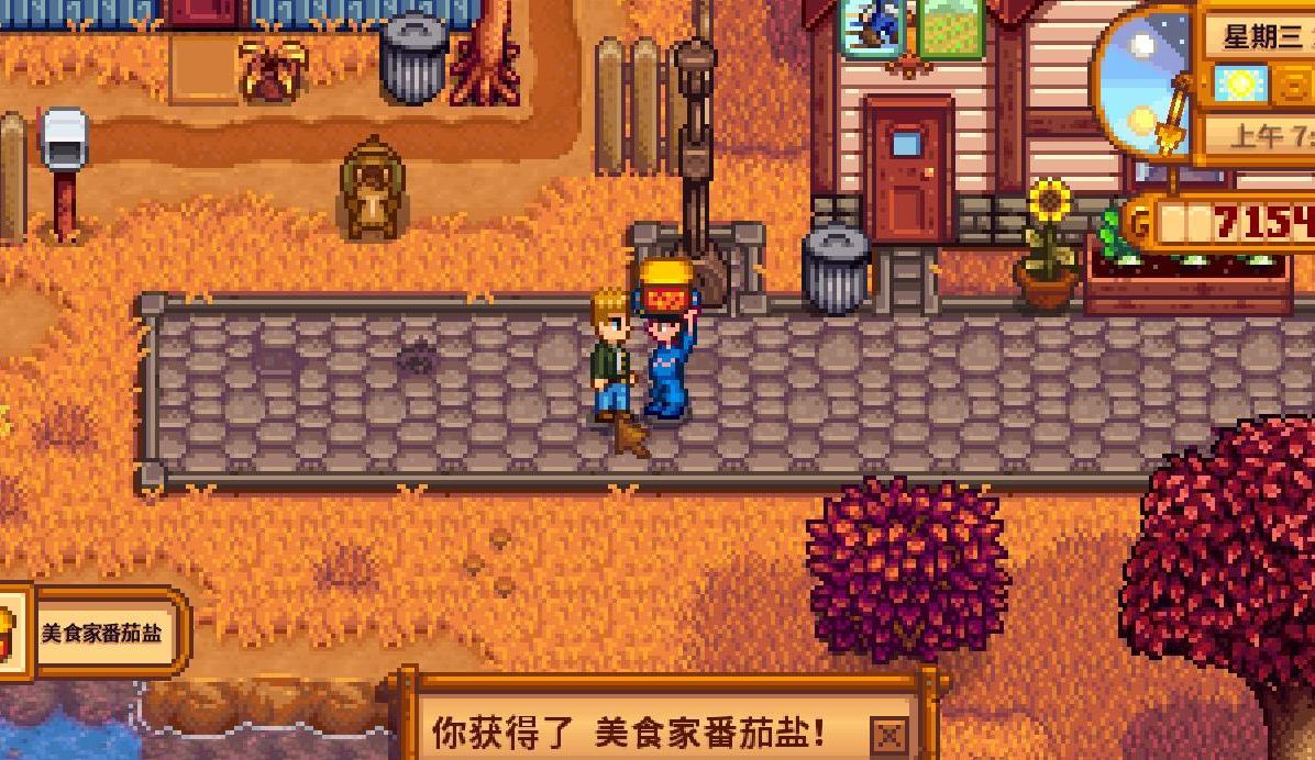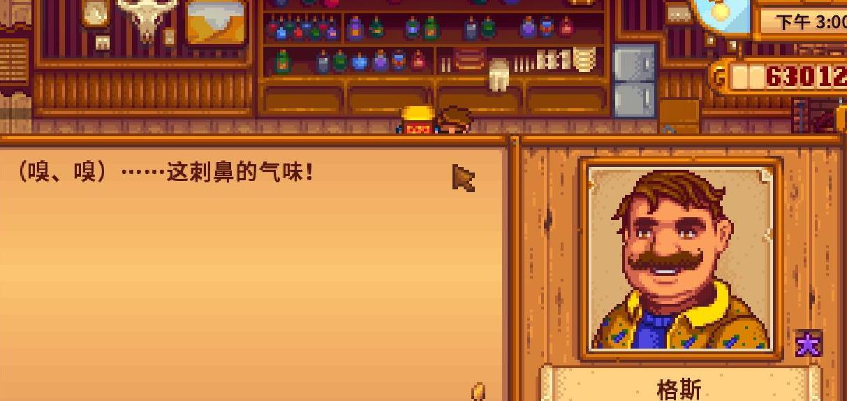 将“战争纪念物”交给肯特后,他会给玩家一个“美食家番茄盐”,不用多说,放眼整个星露谷就一个餐厅老板,没错就是格斯了。直接拿着“美食家番茄盐”给格斯。