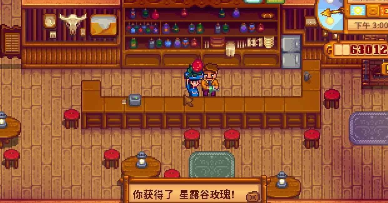 将“美食家番茄盐”给格斯后,玩家会得到一朵“星露谷玫瑰”,拿着玫瑰可能会想到星露谷上的女性,但是前面加了“星露谷”那么就应该是星露谷之外的人了,又要是女性,那就应该是沙漠的桑迪了。立刻来到沙漠将“星露谷玫瑰”交给桑迪。