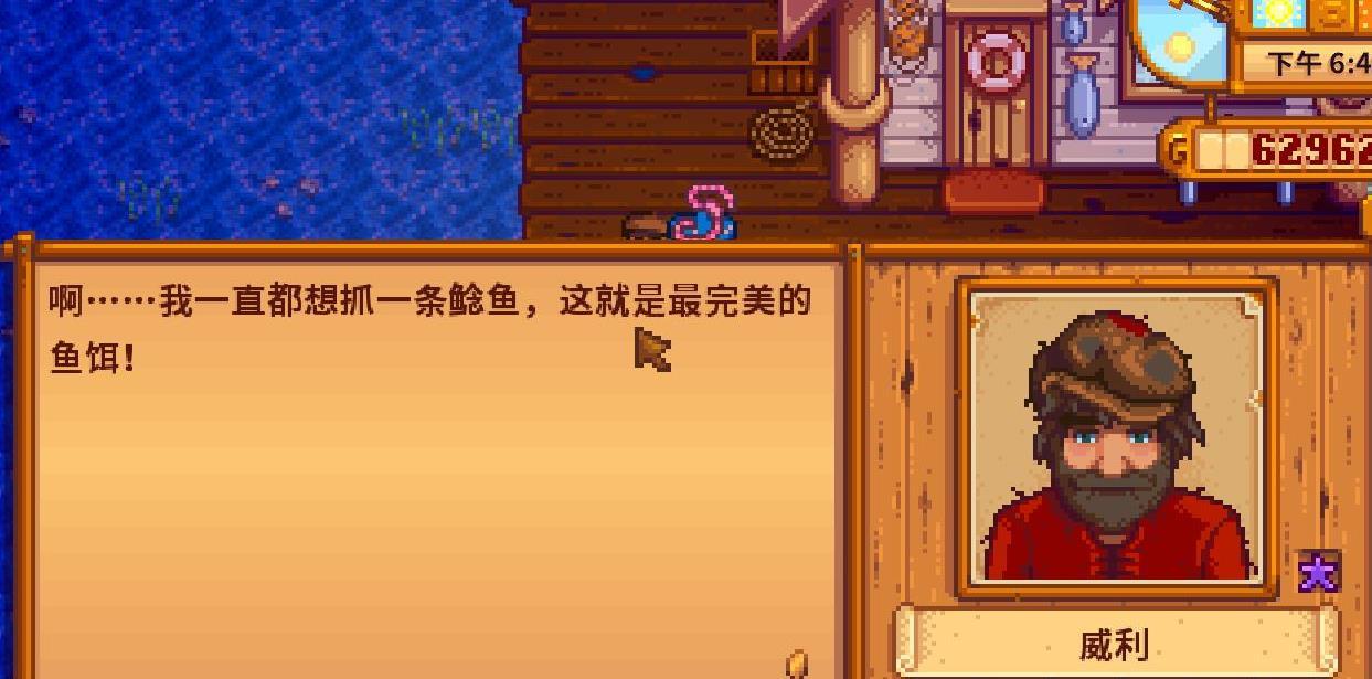 从法师那里,玩家可以获得“蠕动蚯蚓”。那肯定是交给渔夫威利了。带着“蠕动蚯蚓”交给威利。