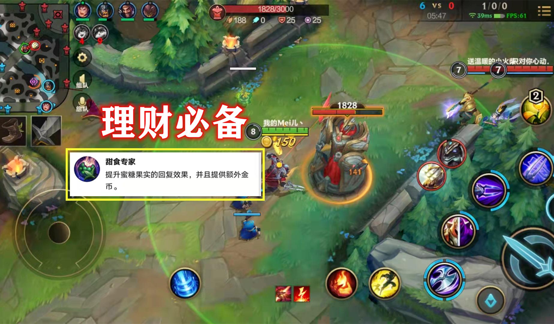 很多线上英雄符文都会点启迪系里的“甜食专家”,让蜜糖果实的回复效果增强,以便让自己线上更好续航。同时,每次吃果子的时候还能为玩家带来60块的经济,如果时间掐得准,分分钟玩成偷菜游戏,最关键的是这些经济对英雄装备的成型来说很有帮助。
