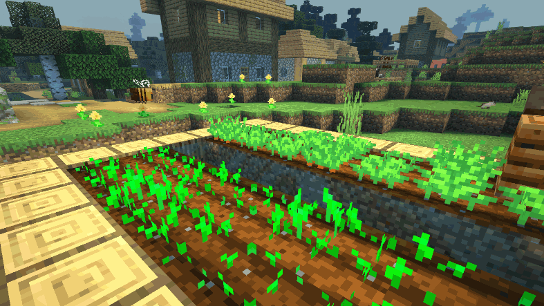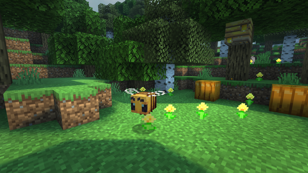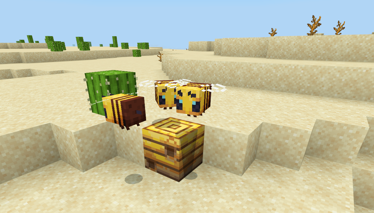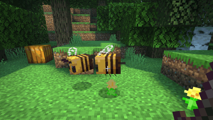 采蜜回家的蜜蜂也不会忘记回馈方块世界的大自然,当它们经过的小麦、马铃薯、胡萝卜等植物的时候,会为这些植物授粉。接受来自蜜蜂的帮助后,这些作物会直接进入下一个生长阶段,是不是超棒呢?