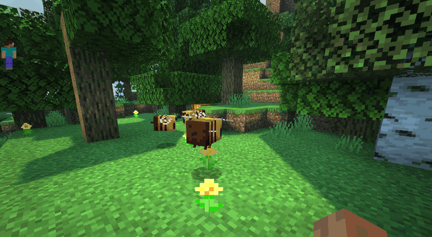 每日辛勤劳动的蜜蜂是可以自然生成的,在方块世界的每一个晴天,蜜蜂都会离开家,勤勤恳恳地采集花粉将蜂巢填满。