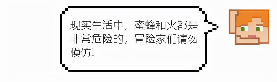 任何辛苦劳动的小蜜蜂,都不喜欢来采集蜂蜜的冒险家。这时我们就需要在蜂巢或蜂箱正下方放置营火或者点火,然后用玻璃瓶在蜂巢上一点,就收集到满满一瓶蜂蜜啦~