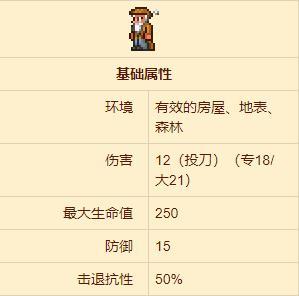 商人是前期最容易入住的NPC之一,可以出售部分道具,攻击方式为投掷飞刀。商人死后会在有空房且玩家物品总价值≥50银币的情况下重新入住。