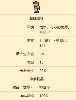 向导是玩家出生时遇到的第一个NPC,遇到敌怪时会使用木弓进行攻击,肉山后会升级为烈焰箭(注:大多数NPC会随着玩家击败BOSS的进度而提高攻击力)。