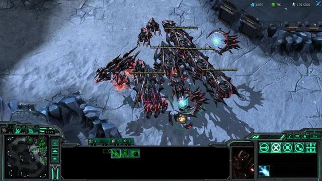 虫族的施法单位决定了后期战局的走向,在应对黄金舰队时也是如此,这在某种意义上需要更多的微操,保证施法单位技能的释放速度,因此虫族玩家需要多做练习才能稳定与黄金舰队交战。上文已经提及,航母在失去拦截机后,本身没有任何作战能力,因此虫族部队在交战时,要尽量保证对拦截机的杀伤,尤其是孢子爬虫。如果对自己的操作没有足够的信心,也可以选择前期的一波战术。